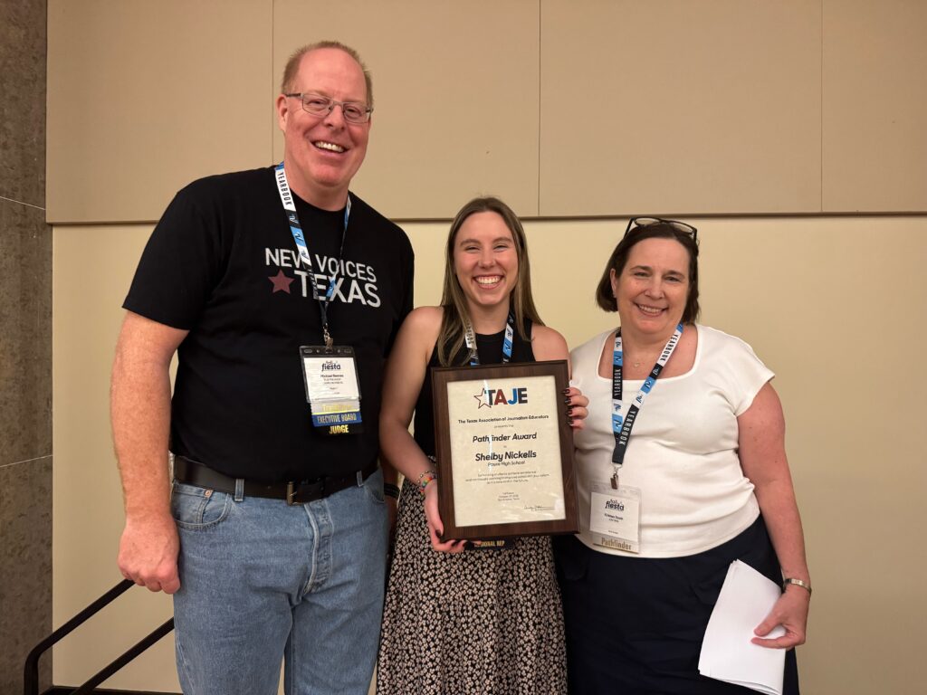 Rouse High School adviser Shelby Nickells also received a Pathfinder Award from the Texas Association of Journalism Educators. The TAJE Pathfinder Award was first given in 2015 to recognized educators advising scholastic media programs for seven or fewer years.