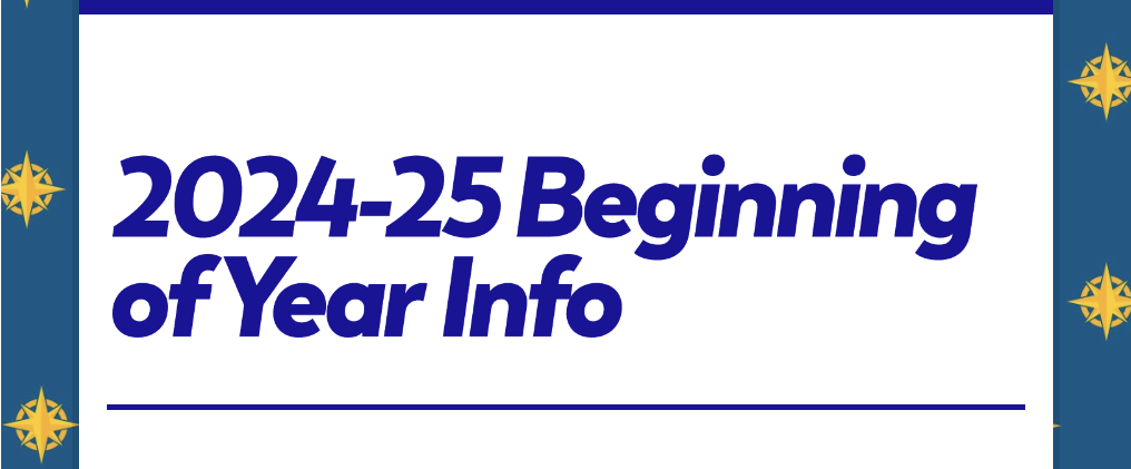 ¡El verano ya está aquí! Mientras usted está en su tan necesario descanso, queremos compartir el Horario de comienzo de año escolar 2024–2025. Los detalles sobre los lugares de reunión se seguirán añadiendo durante el verano para que cuando vuelvan en agosto, tengan toda la información necesaria.