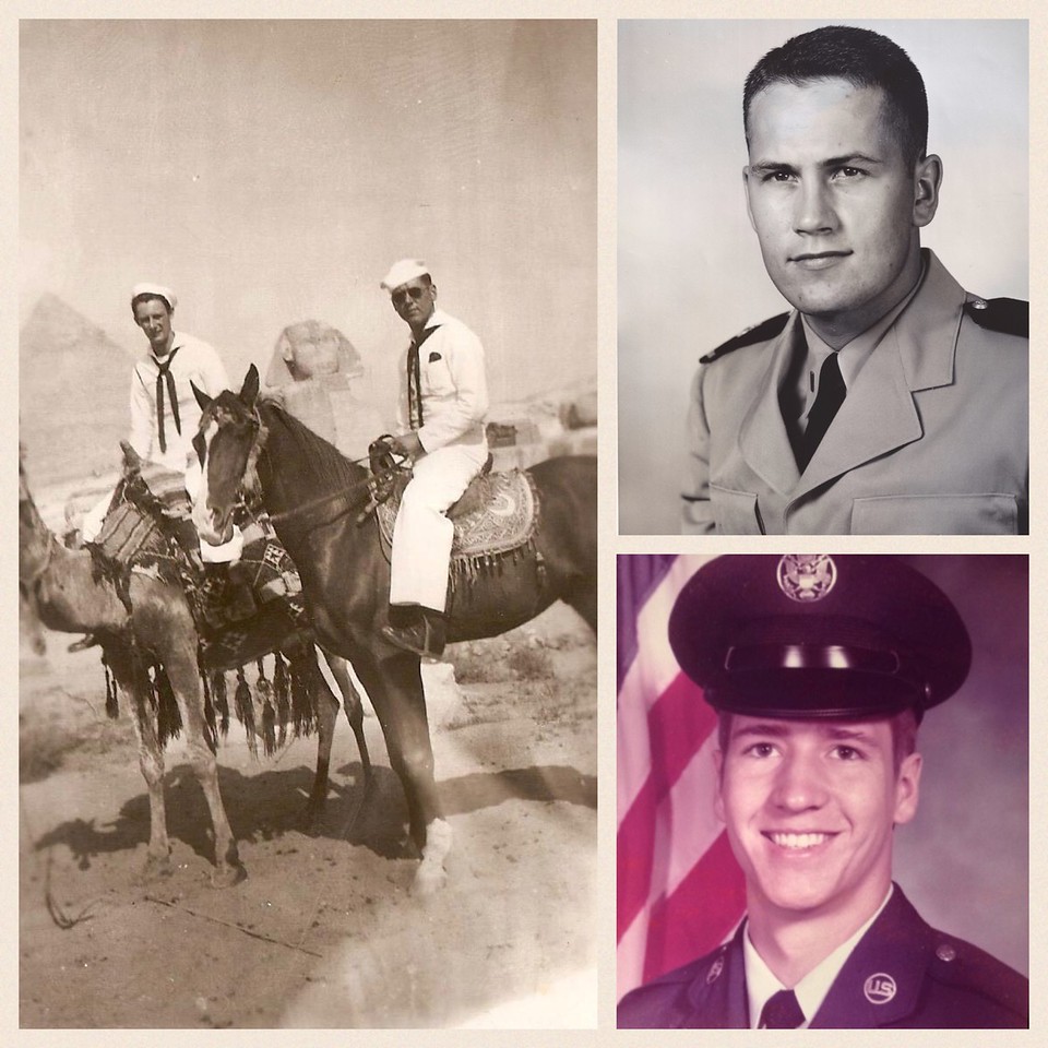 (Left) Charles Billiter, U.S. Navy, grandfather to Amy Bray; (Top Right) Ross Billiter, U.S. Navy, father to Amy Bray; and (Bottom Right) Kevin Bray, U.S. Air Force, spouse to Amy Bray